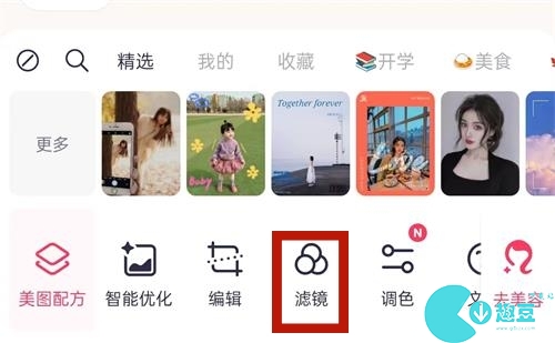 2、然后我们需要从相册中挑选一张需要美化的照片,之后我们再点击底部的【滤镜】。