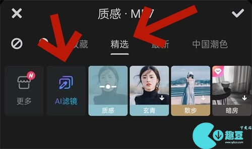 3、接着我们可以一直滑动最前往即可找到【AI滤镜】,或者是直接搜索也可以。