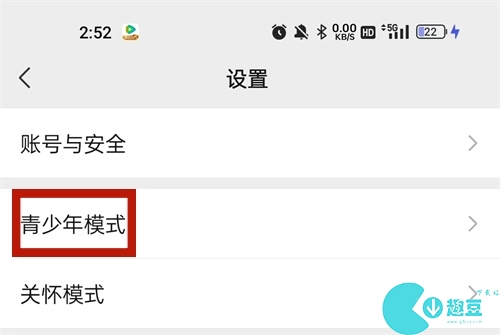 2、进入设置页面就点击【青少年模式】,随后将青少年模式开启即可。