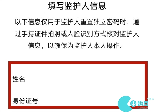 3、开启需要先设置密码,还有就是输入监护人的名字与身份证号码。