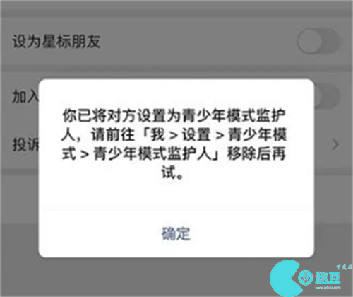 6、之后我们在将青少年模式关闭即可,然后要是对方想要拉黑删除你的话就会弹出提示了。