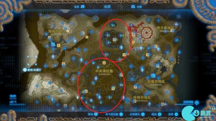 将塞尔达地图分为9个区域—**海拉鲁、丘陵地区、哈特尔地区、费罗尼地区、拉聂尔地区、阿卡莱地区、奥尔汀地区、海布拉地区、格鲁德地区,将各区域内的神庙按顺序标记号码,供逐一对照查找。