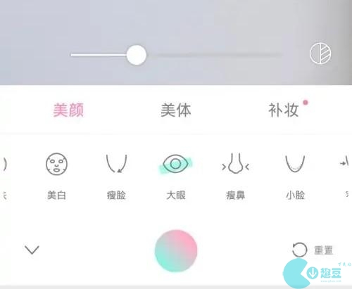 4、打开美颜,【五官的大小和形状】的调整进度条必须少于一半。