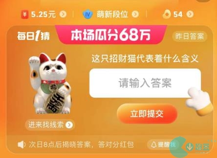 1、首先我们从淘宝主页面的下方,进入到淘宝大赢家的活动当中,就可以看见每日一猜的问题是:这只招财猫代表着什么含义?