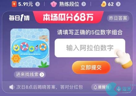 3、接着我们就把获取到的答案输入到答题框当中,立即提交之后我们就可以等待答案揭晓即可,答对猜可以瓜分到奖励哦。
