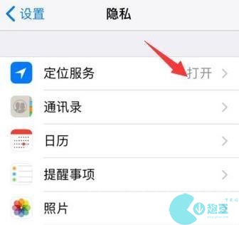 3、之后再进到隐私,打开你的“定位服务”。