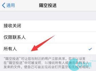 2、随后点击通用,挑选“隔空投送”选“所有人”。