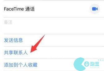 4、接着你就可以去投送了,例如打开一个联系人点击“共享联系人”。