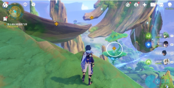 2、对话结束之后,我们会**一块活动区域,我们需要乘坐飞车来到下图所标记的位置;