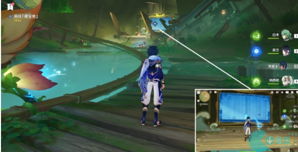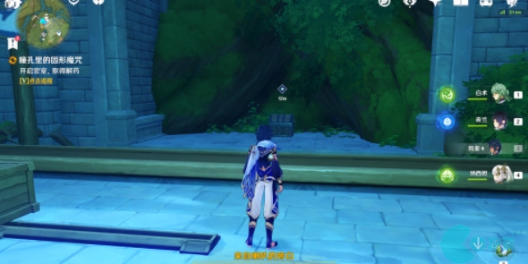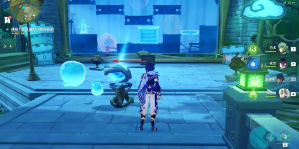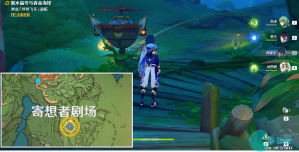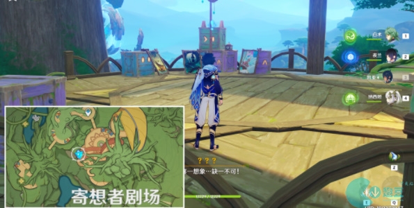 1、我们来到寄想者剧场,对应下图标记单位位置,我们可以看到一个小水珠,我们需要进行对话;