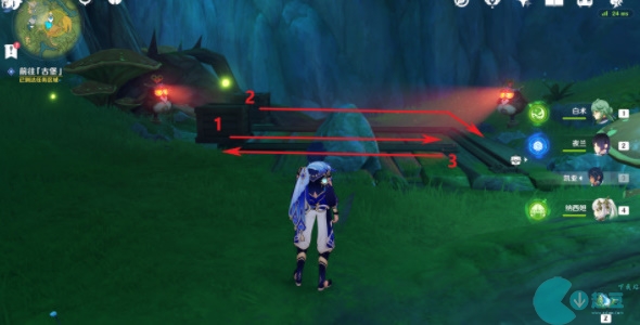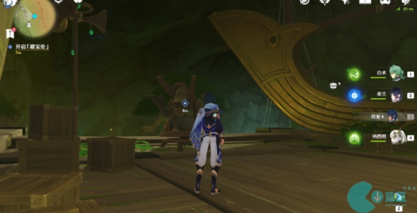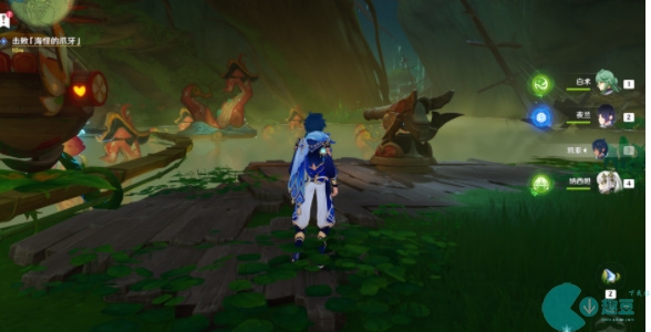 3、之后我们根据任务的引导来到洞窟,我们需要借助火炮来击破海怪爪牙;