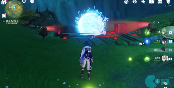 2、对话结束之后,我们需要和小水珠进入洞窟,然后需要我们完成两次解谜;