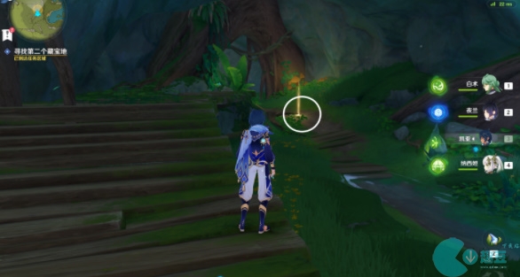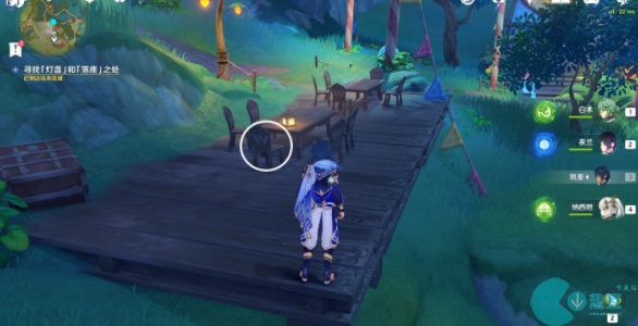 6、返回提交任务,我们开区第三个任务的线索,我们来到传送点向左边走我们可以看到三个小水珠,靠近之后,他们会飞走,我们需要根据线索找到他们的位置;