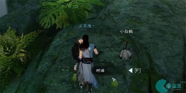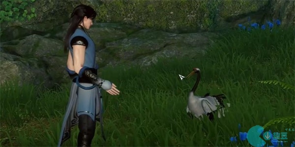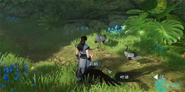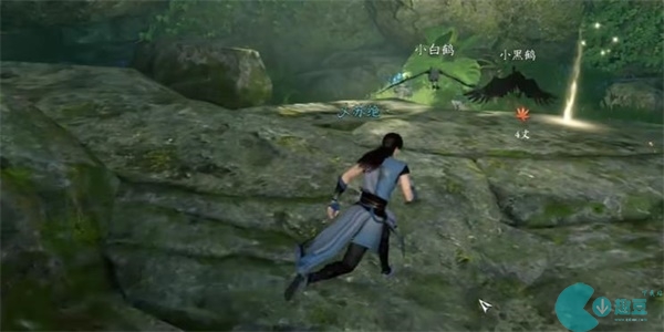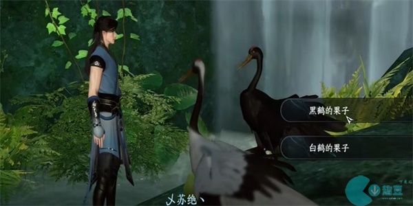 2、我们醒来时,就可以看到面前有一只白鹤和一只黑鹤,需要与它们进行互动,吃两只鹤给的果子。