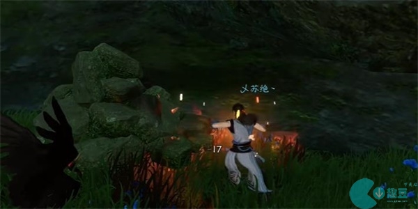 5、小黑鹤突然走开,我们就跟随着小黑鹤前行到石堆旁边,我们使用技能挖开石堆,就可以获取到一本日记,我们阅读日记就可以获得到该技能。