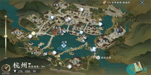 3、然后我们就前往到标记好的位置雷锋塔,在雷峰塔上面寻找到赵文卓。