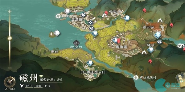 1、首先我们前往到标记好的位置,去解锁奇遇夜惊雨,完成该奇遇任务之后才可以获取到金刚通臂的技能。