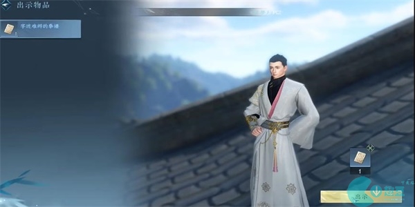 4、我们到达雷峰塔的塔顶,就可以看到赵文卓的身影,我们与他向他出示字迹难解的拳谱。