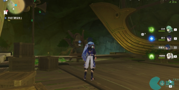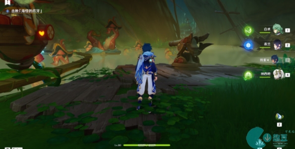 3、之后我们根据任务的引导来到洞窟,我们需要借助火炮来击破海怪爪牙;