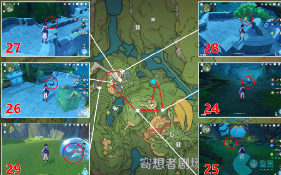 原神寄想者剧场北礼券收集攻略,原神3.8版本中的新地图隐众游园南中我们可以收集6秘盒,26宝箱,很多小伙伴还不清楚这些礼券和包厢的详细位置,下面小编就来告诉大家具体的详细内容!