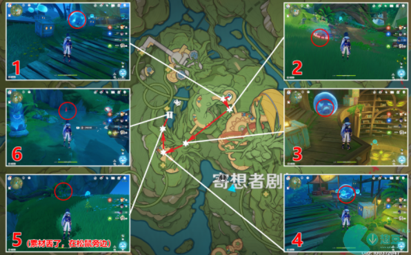 1、寄想西,**个三个小水珠的位置(具体如下),第2个击败的丘丘人即可,第3个和小水珠进行对话即可,第4个三个小水珠的位置(捉迷藏位置如下);