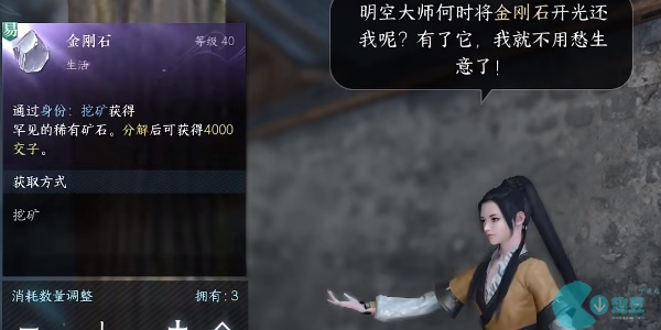 2、出示之后,我们需要根据线索找到叶三娘(在相国寺门前等着明空大师开过光的金刚石。)