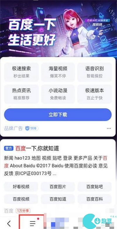 我们打开百度浏览器,接着我们输入自己想要搜索的东西,点击下面的三条横线,如图所示。