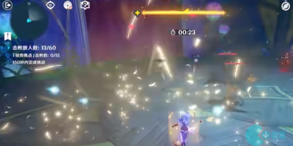 2、我们需要在关卡的150s内击败敌人60个并且获得锐点15,上方是我们的锐意进度条;