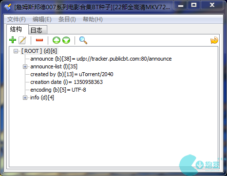3.打开BEncode Editor.exe,File--Open,选择需要编辑的BT文件,打开后如下图所示: