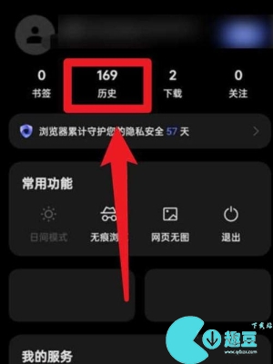 第二步:在个人信息界面我们点击上方的【历史】选项,进入历史浏览记录中。