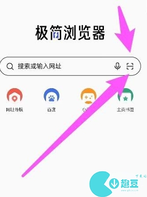 2、进入浏览器主页面后,我们中间搜索框旁边的扫一扫图标,如下图所示。