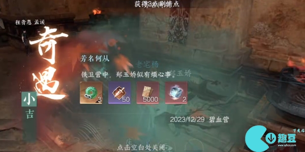 第四步:与郑玉娇对话结束后我们即可完成奇遇任务芳名何从。