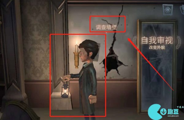 2、登录到进入到游戏页面之后,我们需把镜子移动到墙边,就可以发现【调查墙壁】的功能。