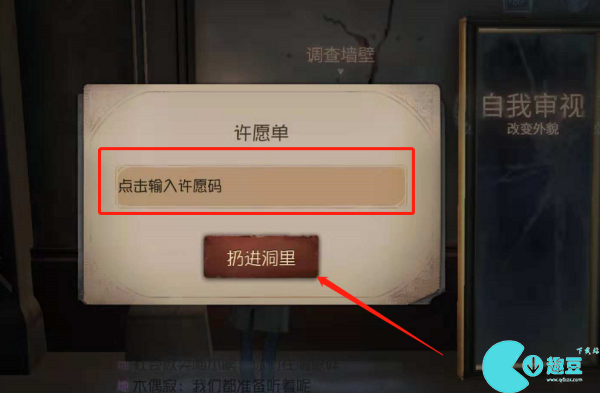 3、点击进入调查墙壁,就可以直接进入到许愿单页面,我们把许愿码输入进去。