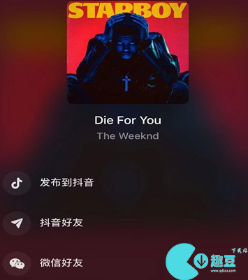 3、如果想要挂在抖音视频上面的话就是需要点击【发布到抖音】这个选项了,完成之后自己的抖音账号就会发布一条视频,左下角同样也会有相关的歌曲信息哦。