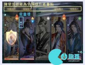 能量槽满格时可释放【技能】例:陈登的技能可为全队提升能量点。