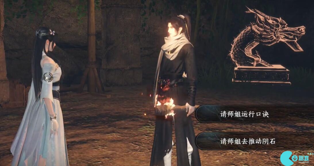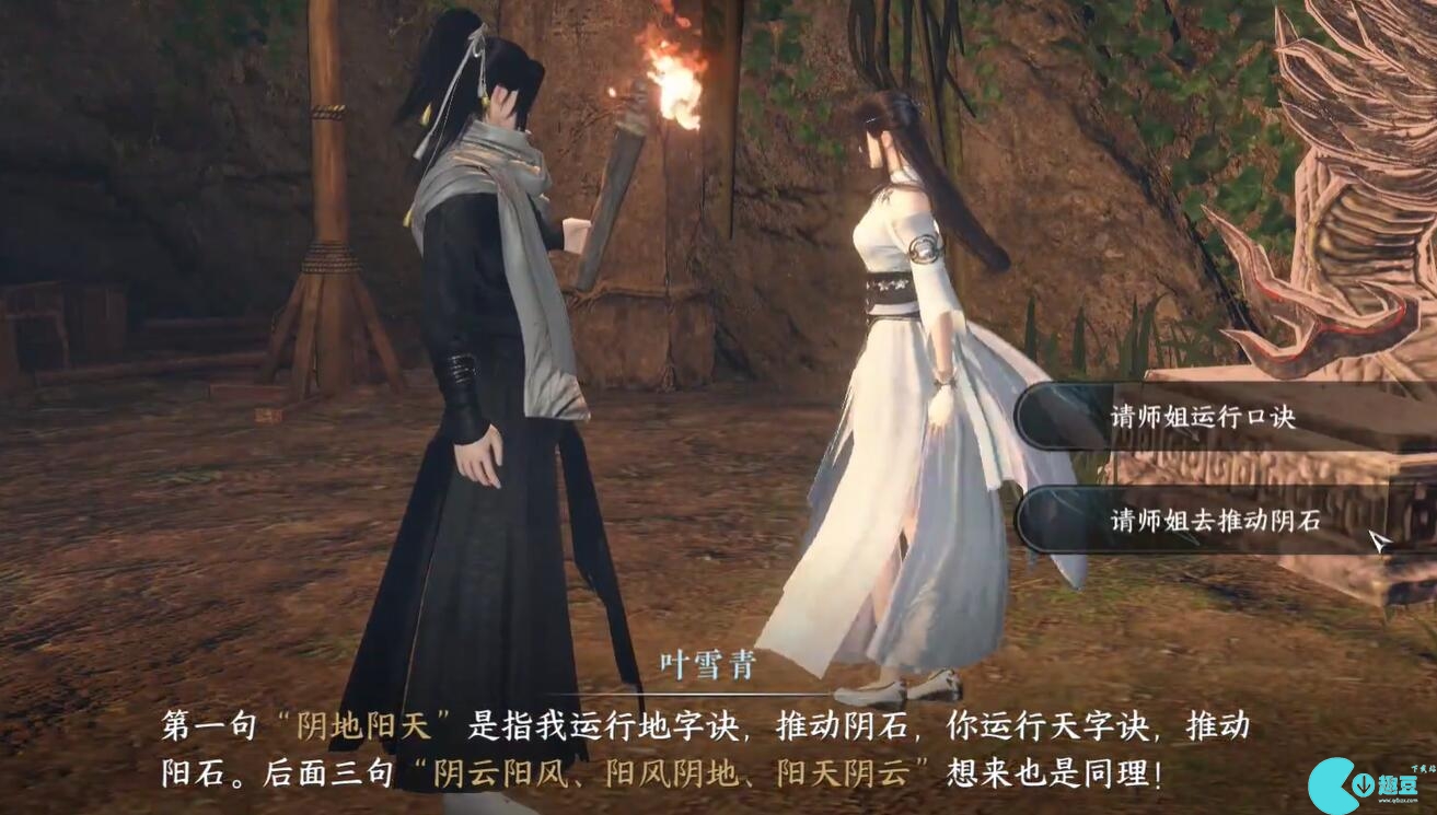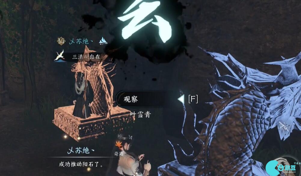 11、师姐运行云字公式,自己的天字公式,把阳石推到左边的石头上。