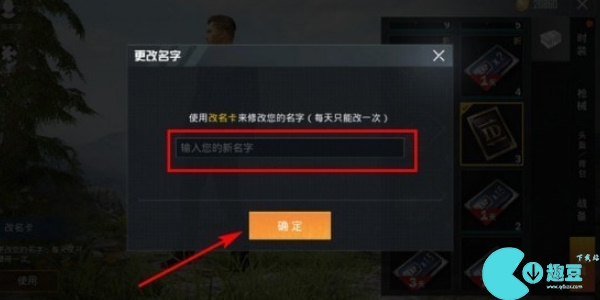 第三步:在改名卡的使用页面中玩家可以输入想要更改的新名字,**点击【确定】即可完成名字的修改。