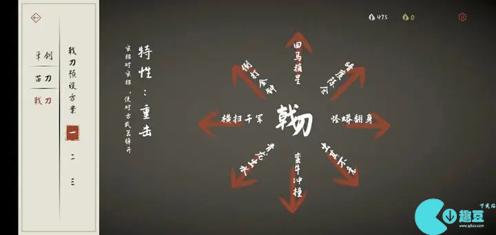 戟刀的实招碰到其他武器的实招时,会弹开对方武器,增加了戟刀的对拼优势,大大提高了戟刀的拆招能力。