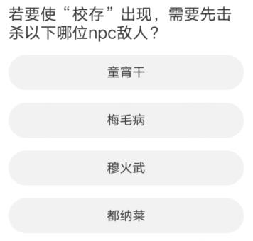 问题7、若要使校存出现,需要先击杀以下哪位npc敌人?