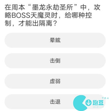 问题1、在周本墨龙永劫圣所中,攻略BOSS天魔灵时给哪种控制,才能出隔离?