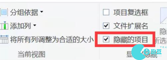 2、接着没有找到appdata文件需要将上方的“隐藏的项目”关闭。