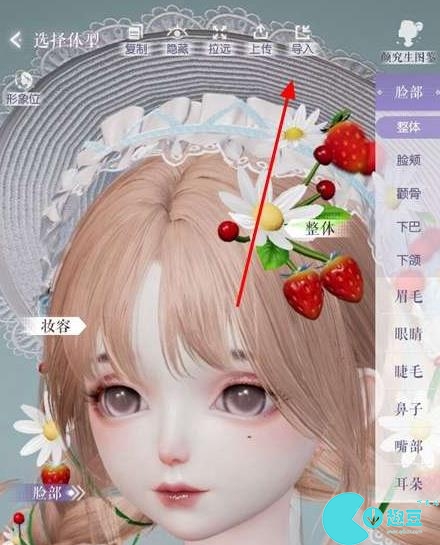 3、点击上方的“导入”,将喜欢的捏脸数据复制进去即可。