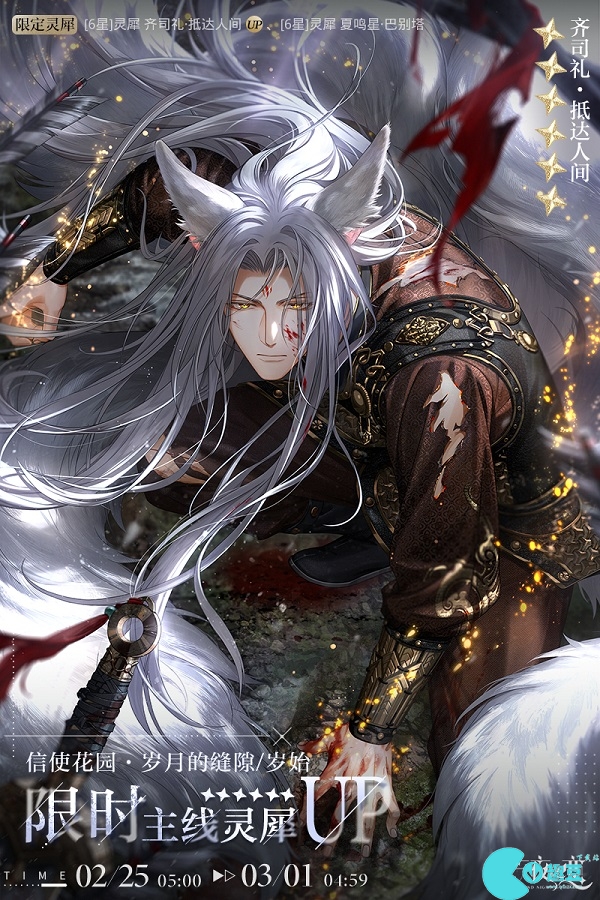 限定收信[岁月的缝隙・岁始/忆终]将于2月25日和3月1日分别开放,主线新六星灵犀 [6星]灵犀 齐司礼・抵达人间、[6星]灵犀 夏鸣星・巴别塔 将限时加入卡池,并分别于对应时间阶段获得概率UP。