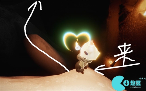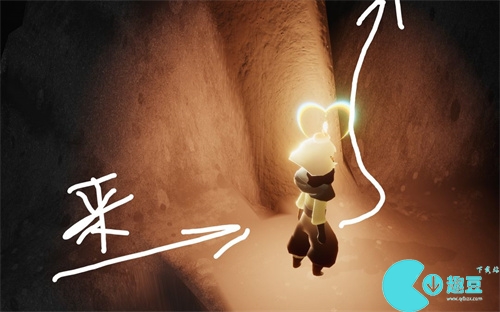 6、从浅缝隙上来后,可以看到上面是个宽阔的平台。直直向前走,走到断层处,到断层下的平台,往右拐,找到一个缺口。