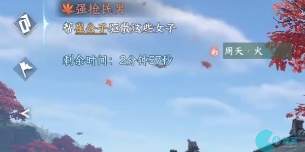 2、接取任务之后我们需要帮助崔公子来驱散周围的三个女子,我们进入战斗三分钟之内解决这些女子即可;