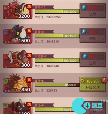 4、推图阵容吕布 郭嘉 太史慈 魏延 张飞超级稳定的推图阵容,可以速推关卡,吕布还是优先升满的武将,确保魏延**出手。