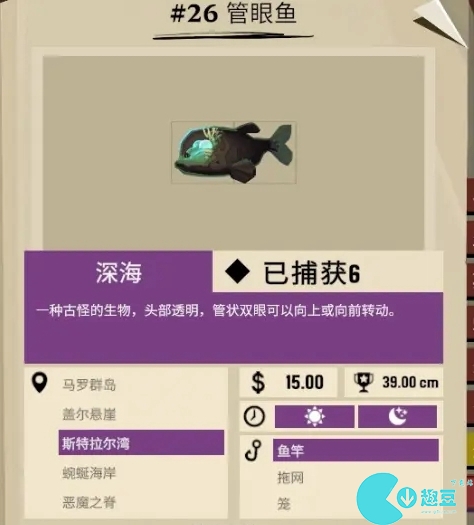 管眼鱼属于稀有鱼类,玩家需要获取深海钓具才可以进行获取。