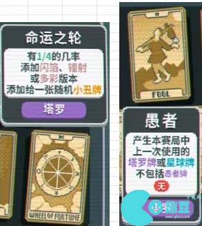 1、命运之轮WHEEL OF FORTUNE:1/4概率添加闪箔,镭射,多彩到一张随机小丑牌。