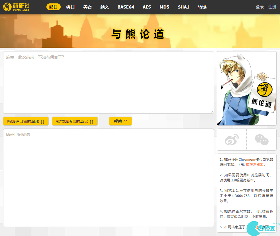 答:输入文字可以转换成熊文,输入熊文可以转换成文字。
